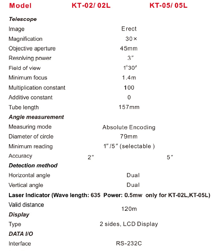 Elektronski teodolit modeli DT-02 i DT-05